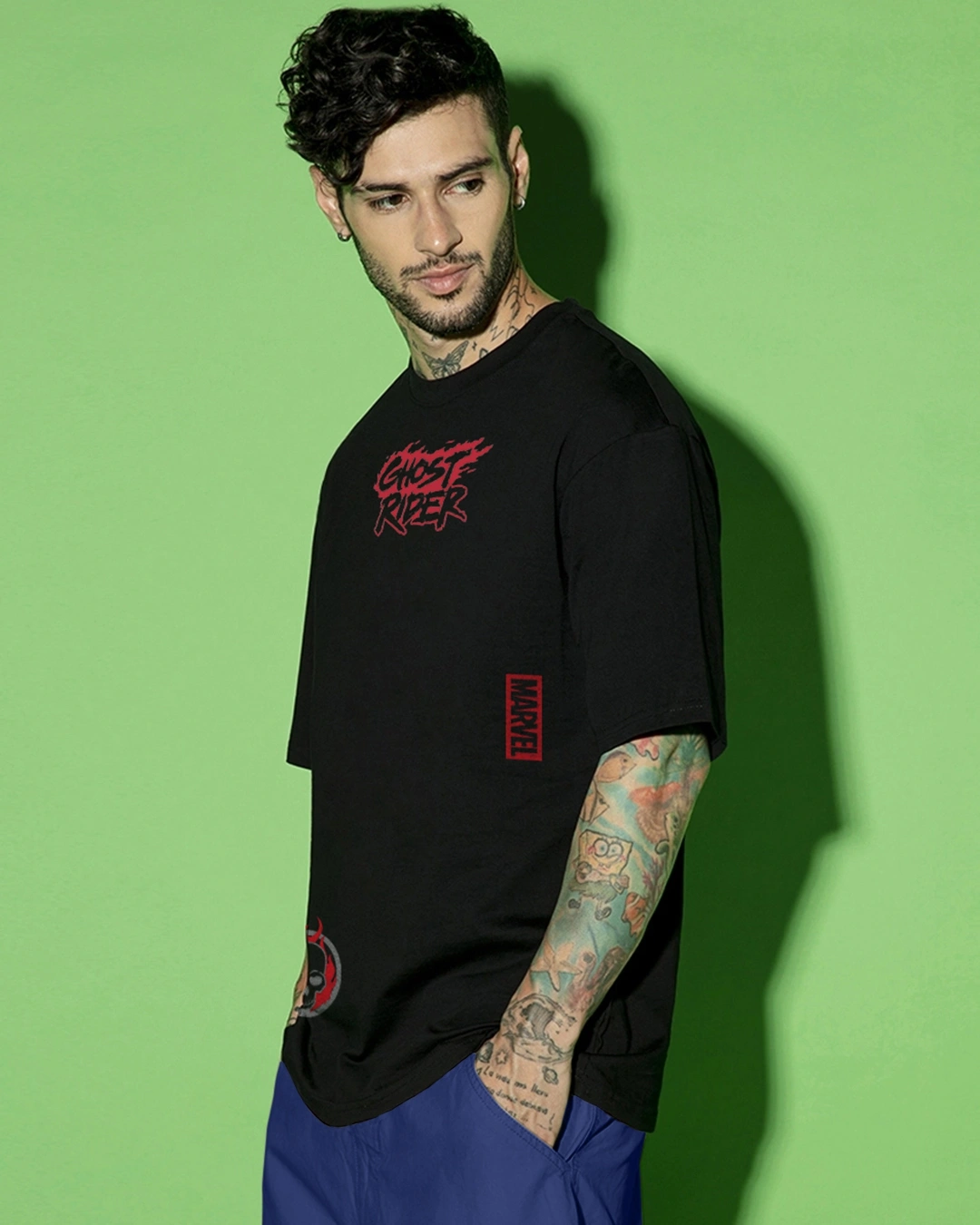 Men’s Black Ghost Rider Spirit of Vengeance Graphic Printed Oversized T-shirt
