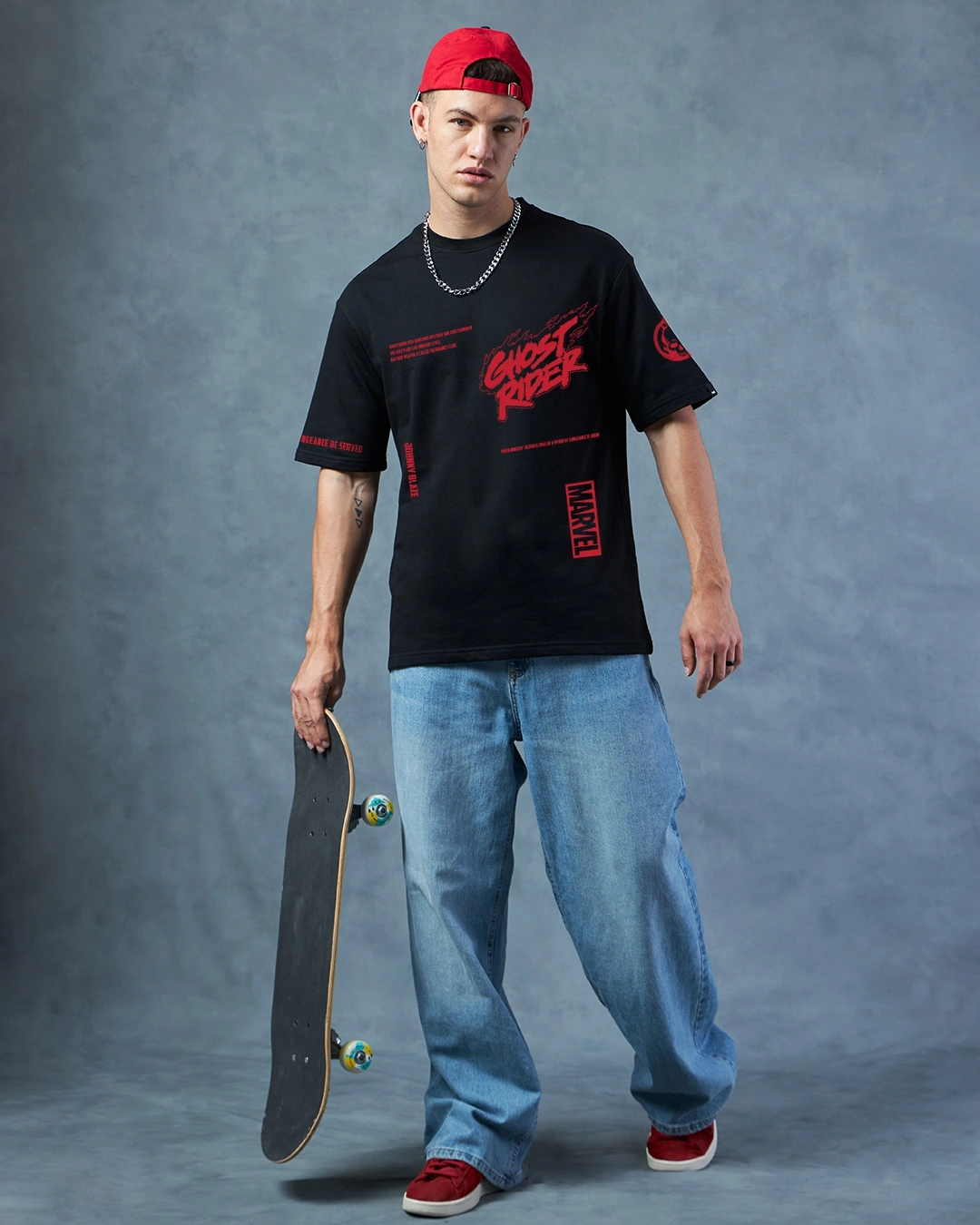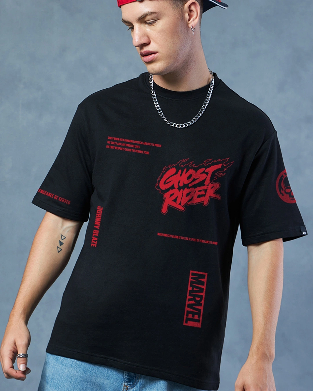 Men’s Black Spirit Of Vengeance Graphic Printed Oversized T-shirt