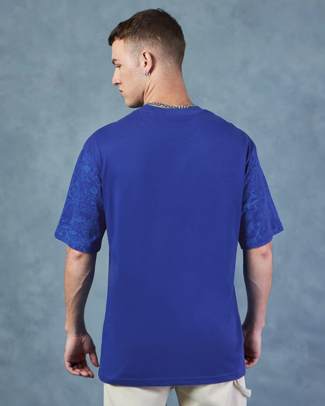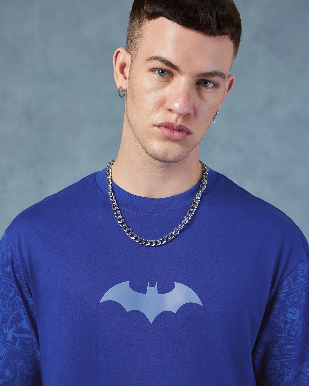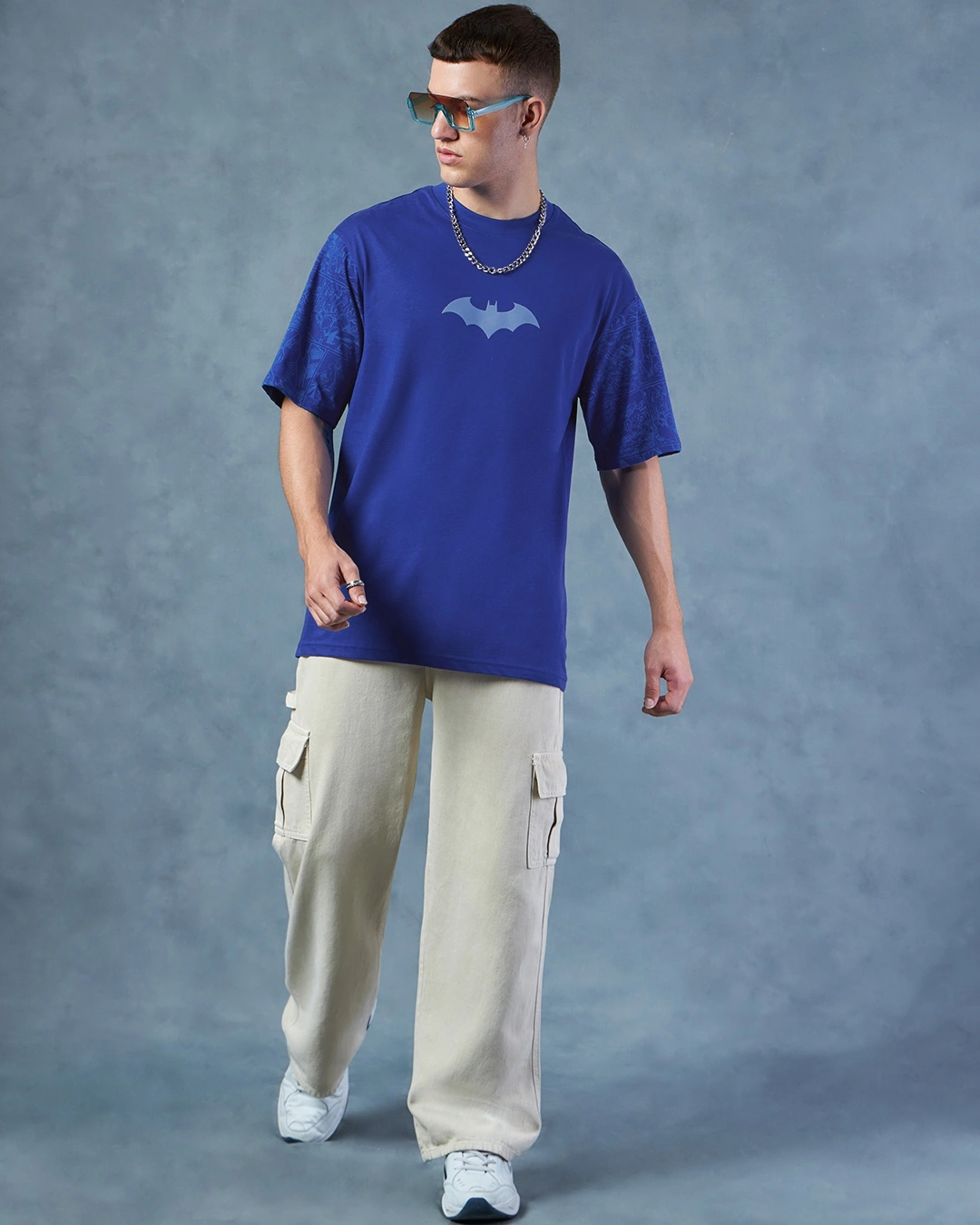 Men’s Blue Batman Logo Graphic Printed Oversized T-shirt