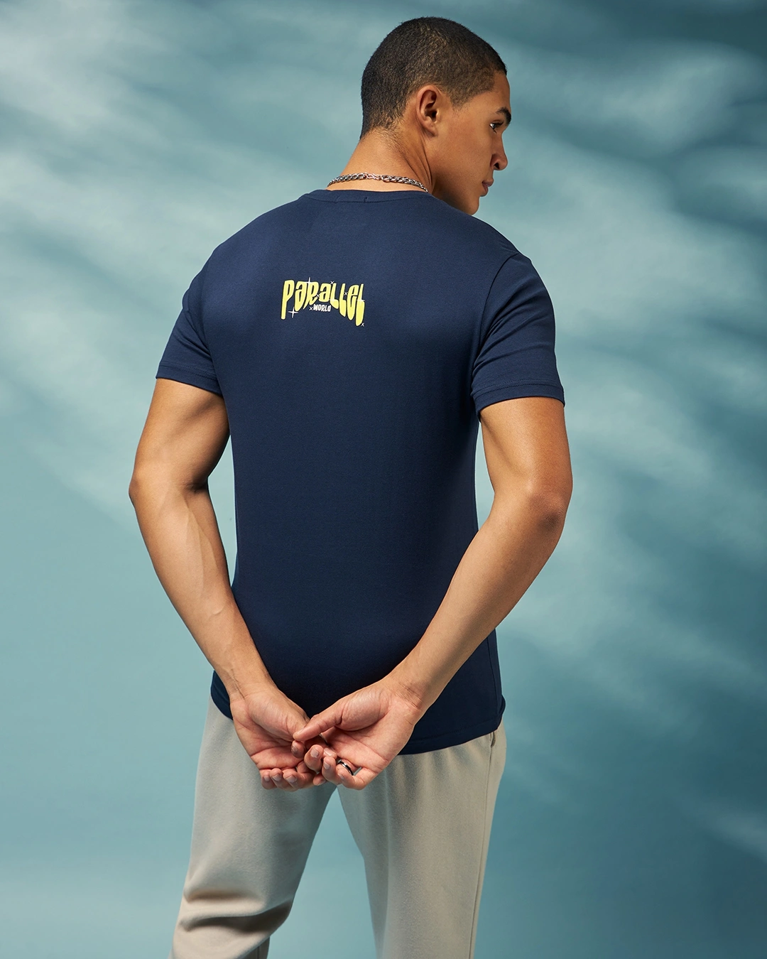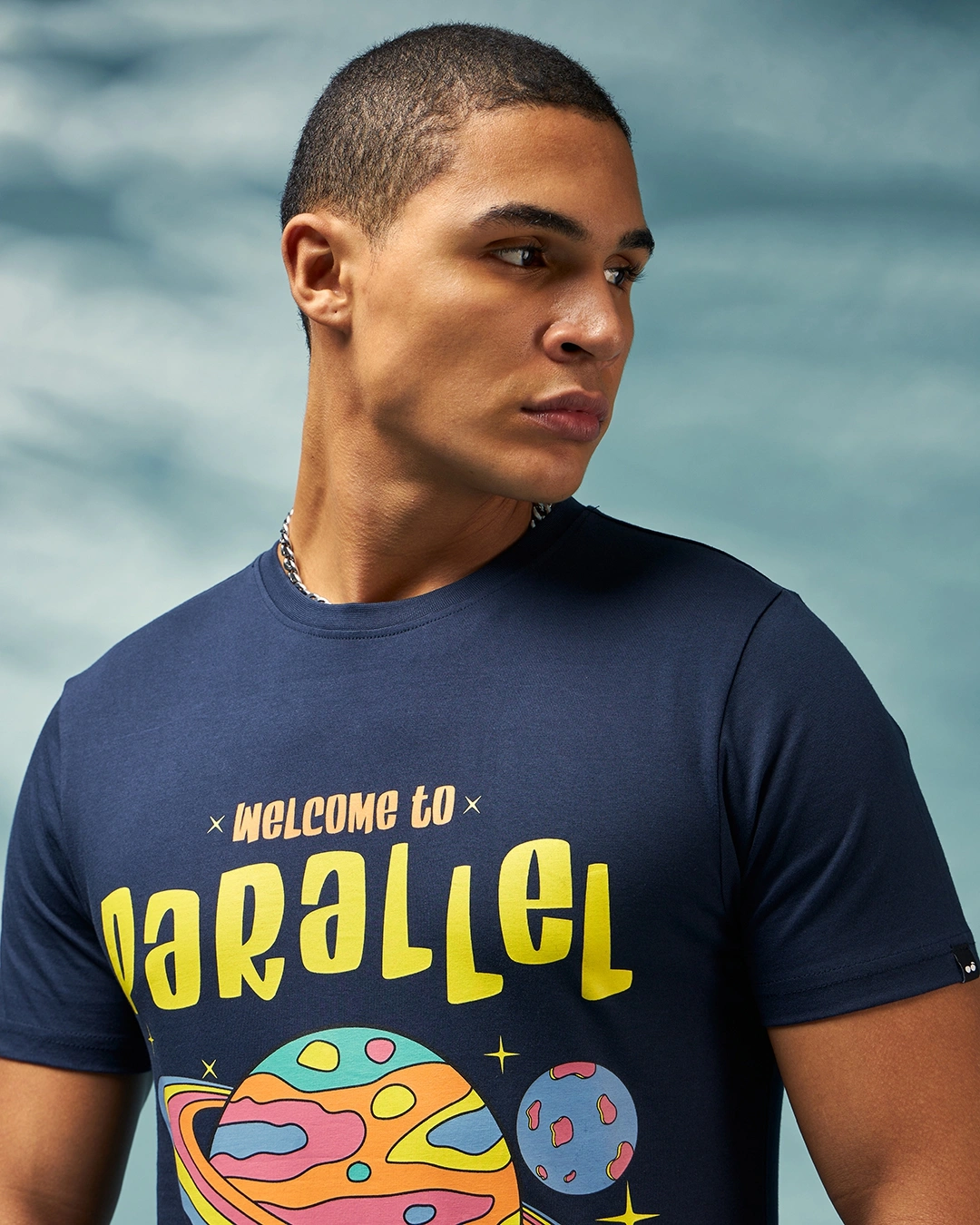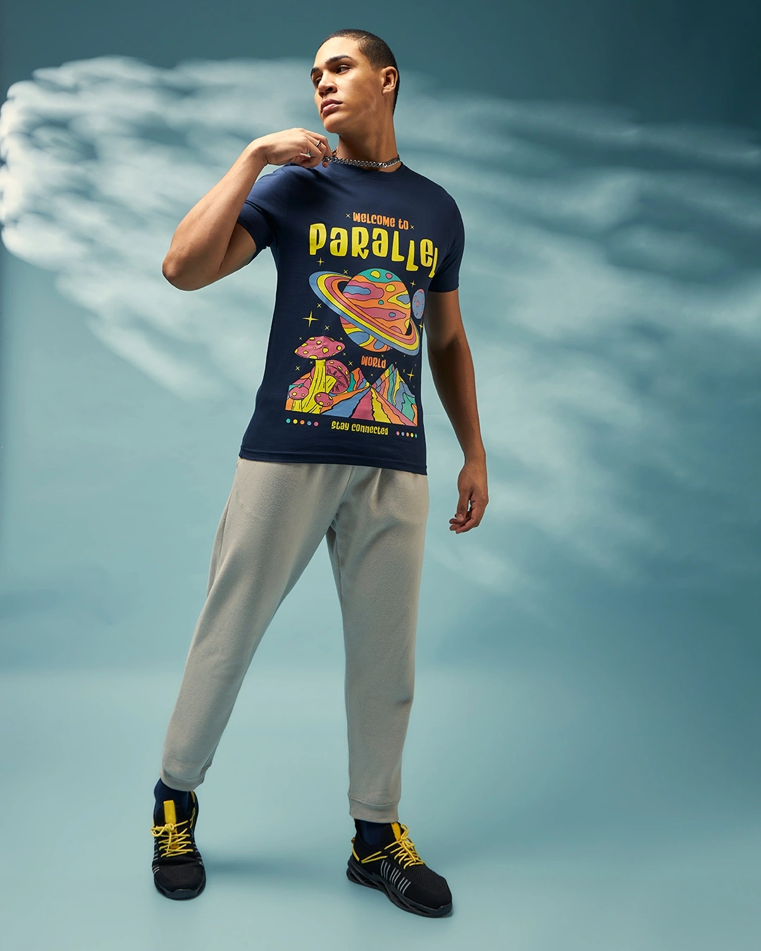 Men’s Blue Parallel World Graphic Printed T-shirt