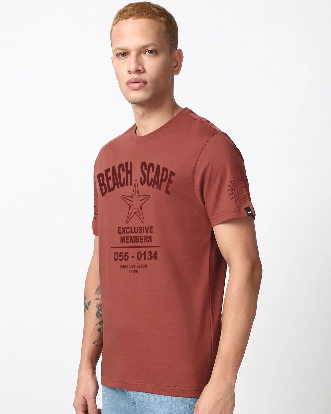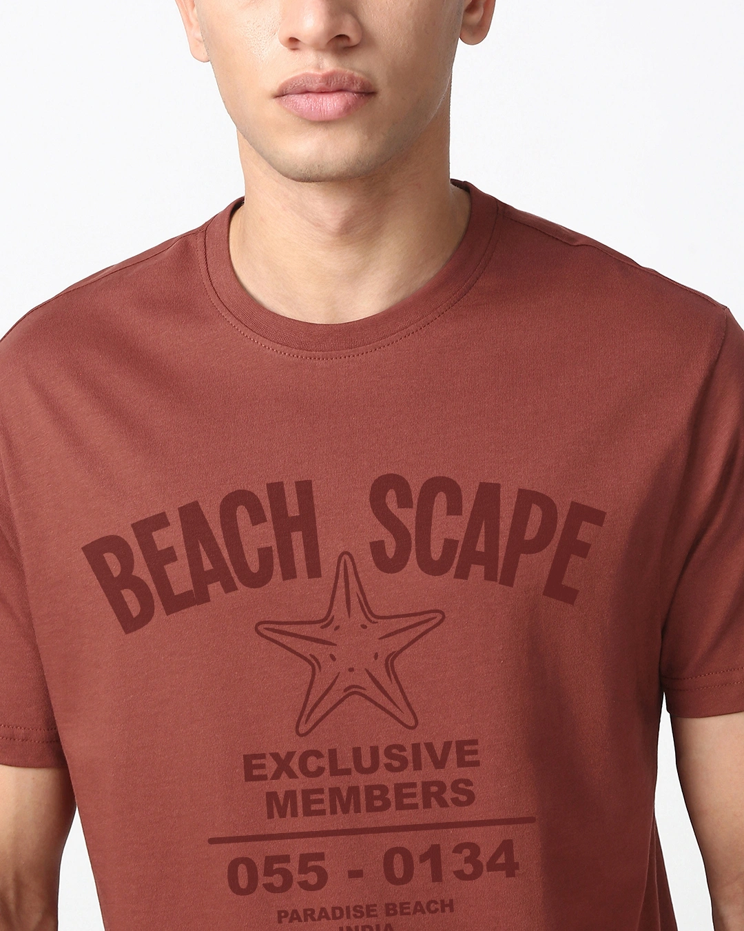 Men’s Brick Red Beach Scape Typography T-shirt