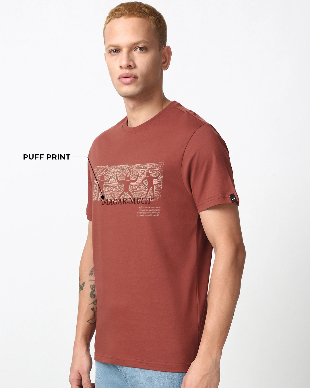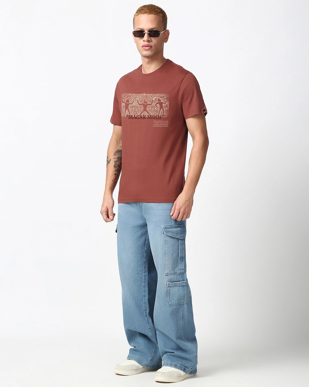 Men’s Brick Red Magar Much Graphic Printed T-shirt