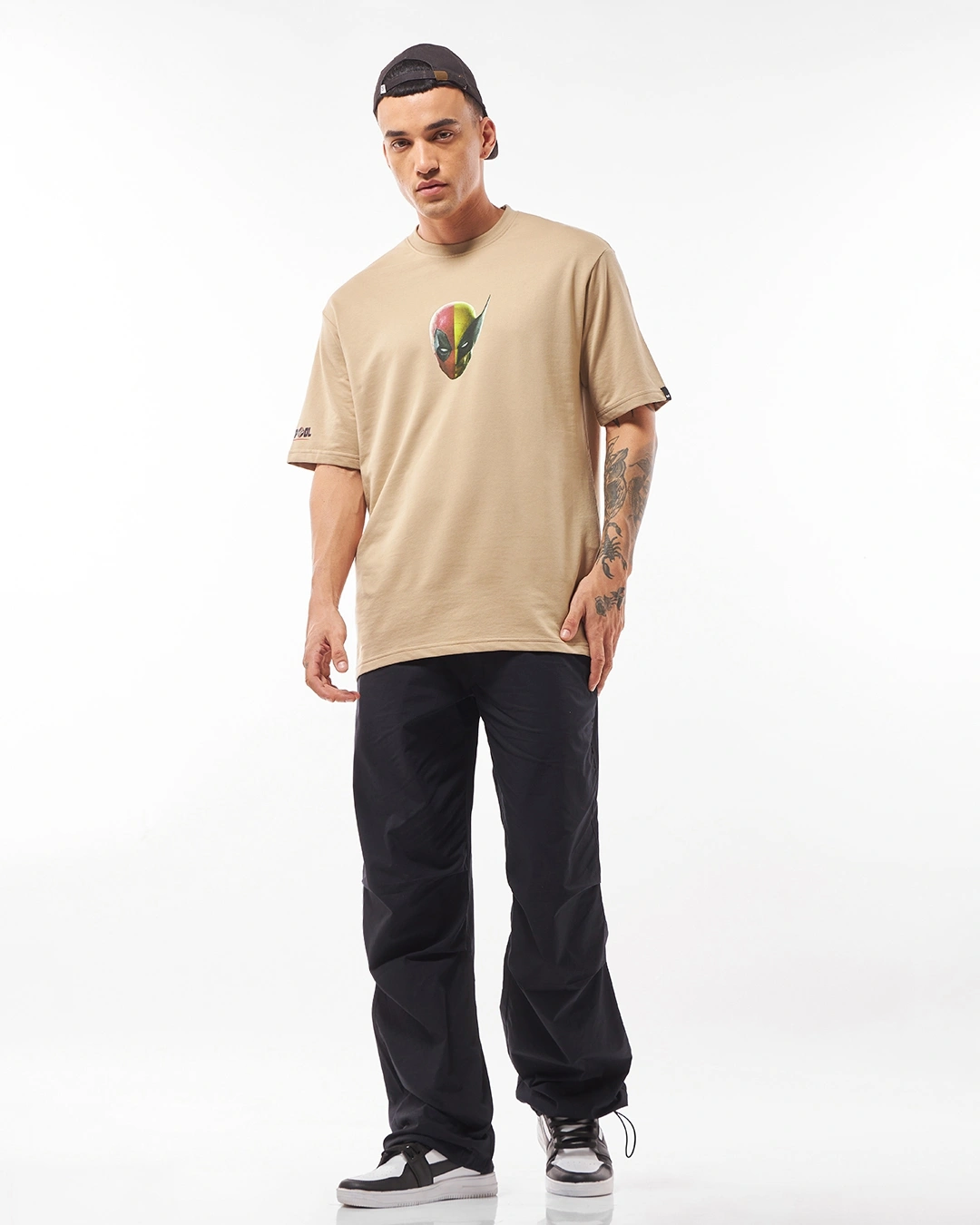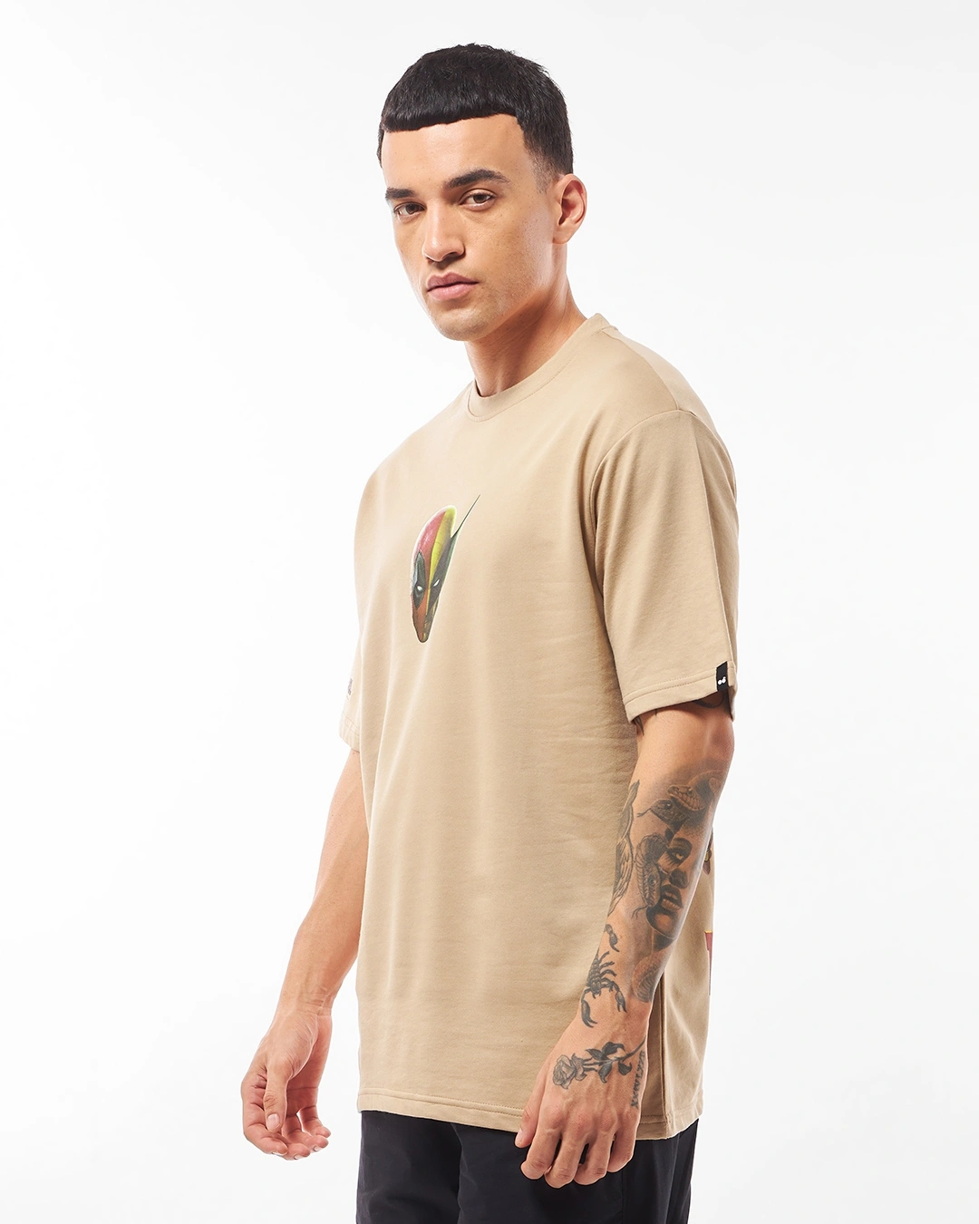Men’s Brown Deadpool Duo Graphic Printed Oversized T-shirt