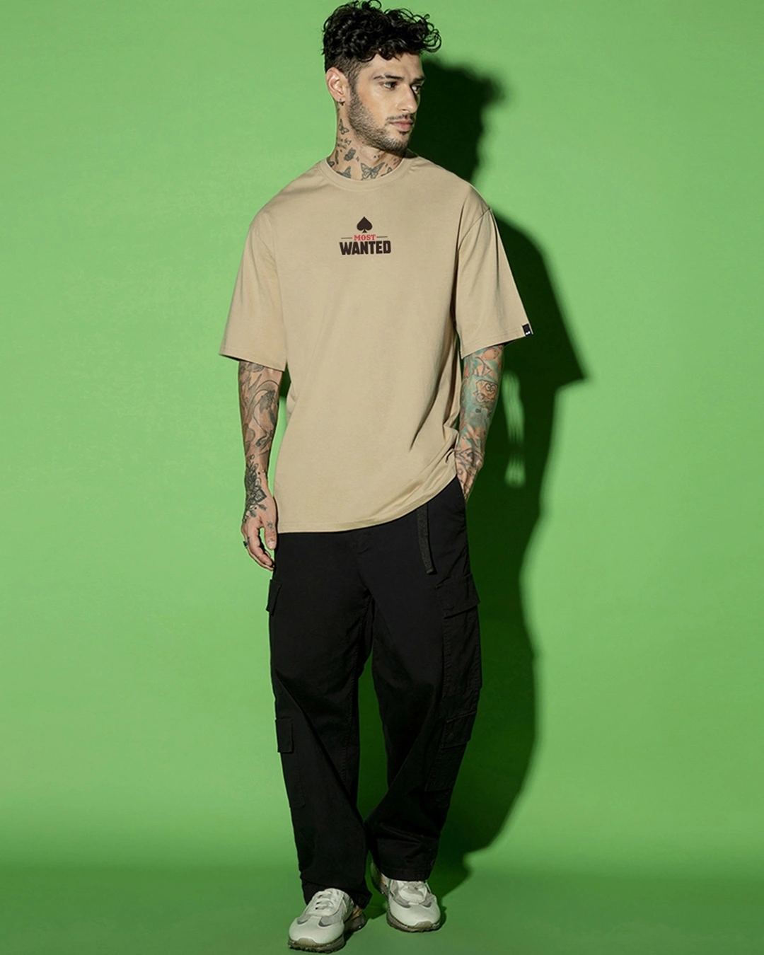 Men’s Brown Most Wanted Graphic Printed Oversized T-shirt