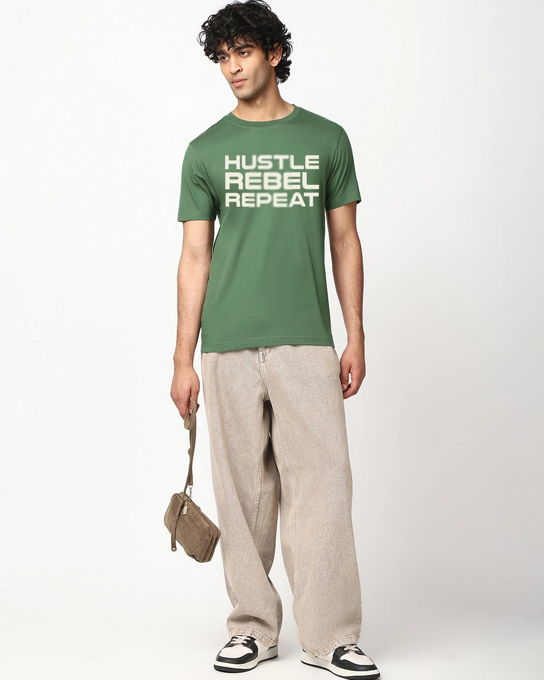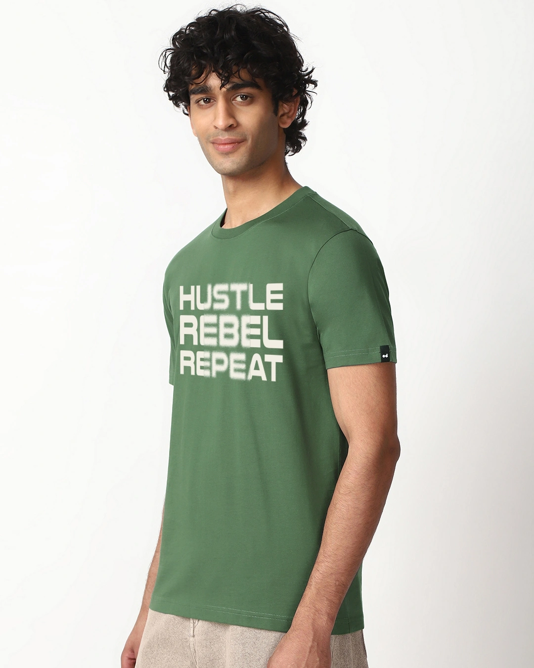 Men’s Green Hustle Rebel Repeat Typography T-shirt