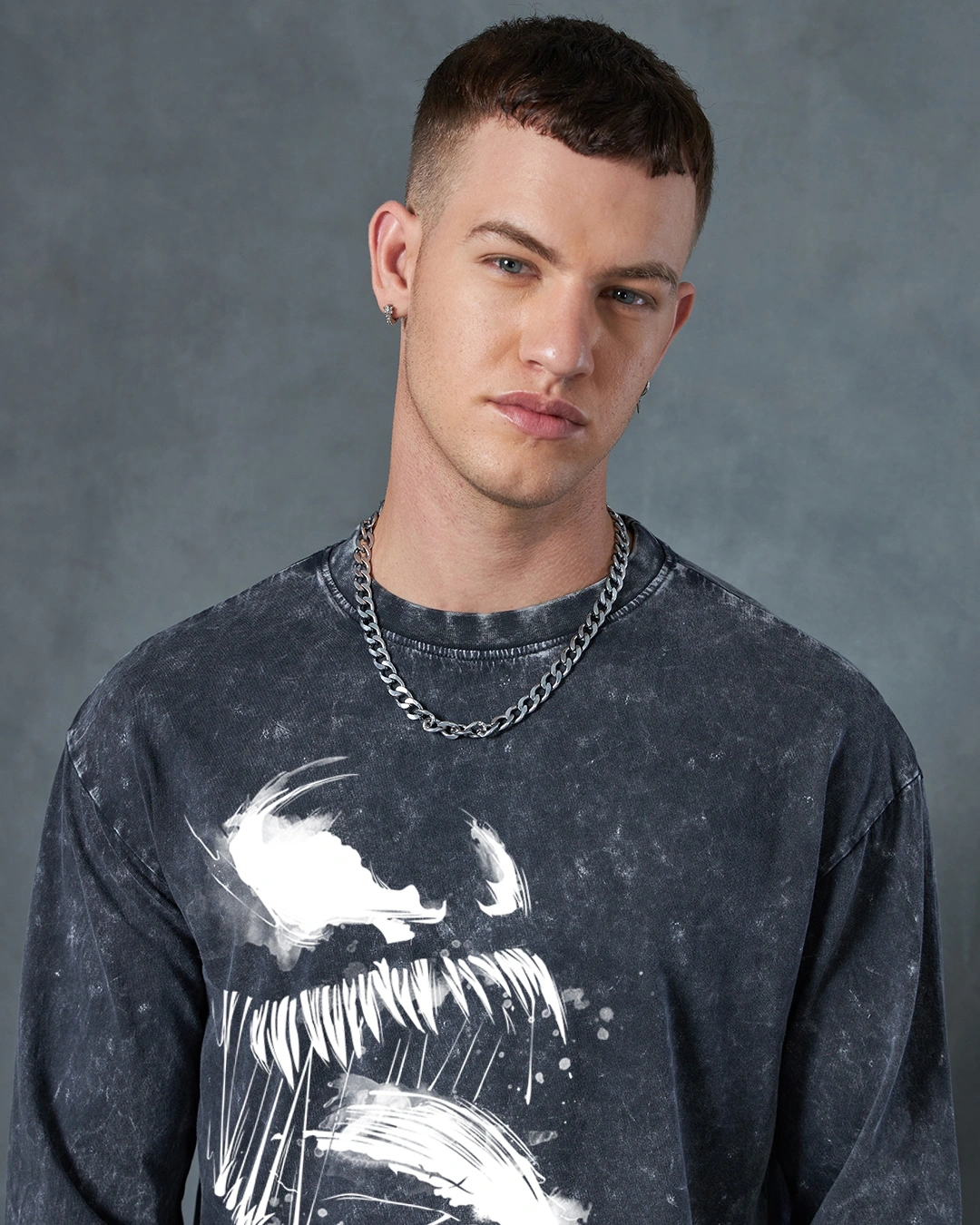 Men’s Grey Venom Graphic Printed Oversized Acid Wash T-shirt