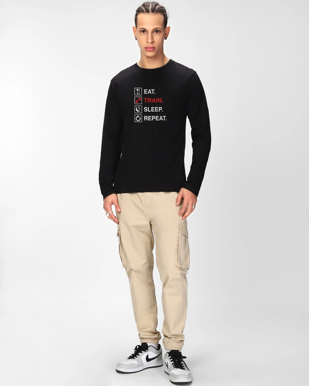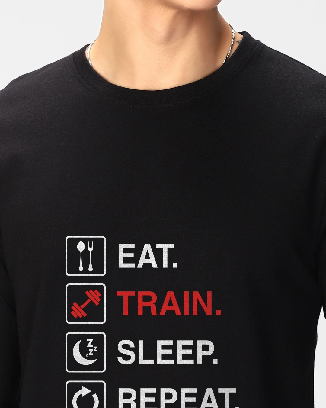 Men’s Jet Black Eat Sleep Train Repeat Typography T-shirt