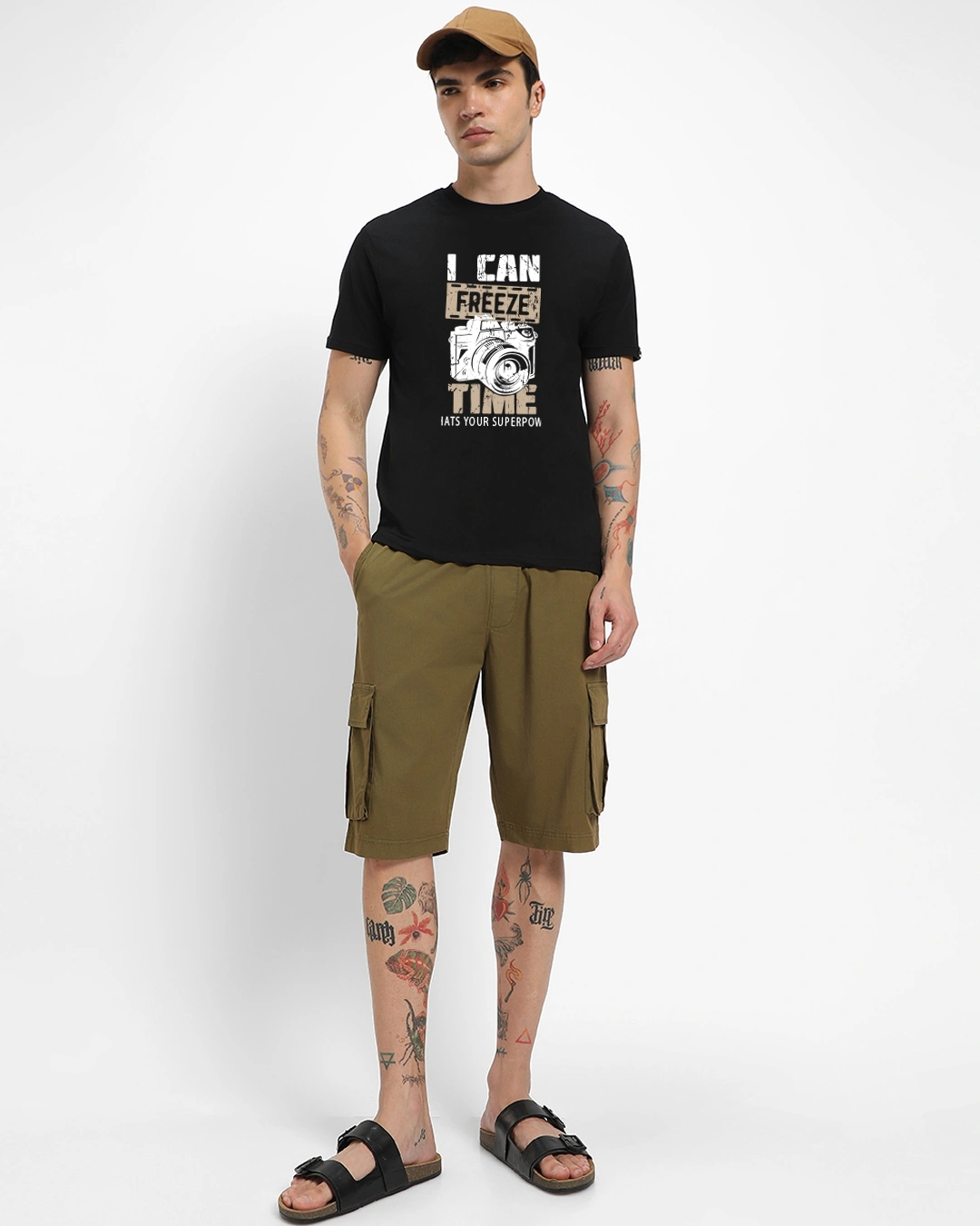 Men’s Jet Black Freeze Time Graphic Printed T-shirt
