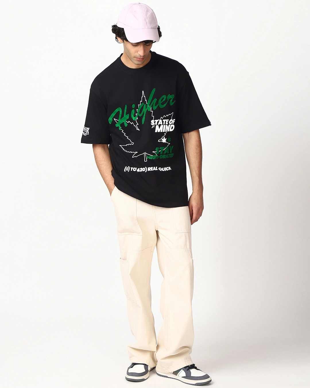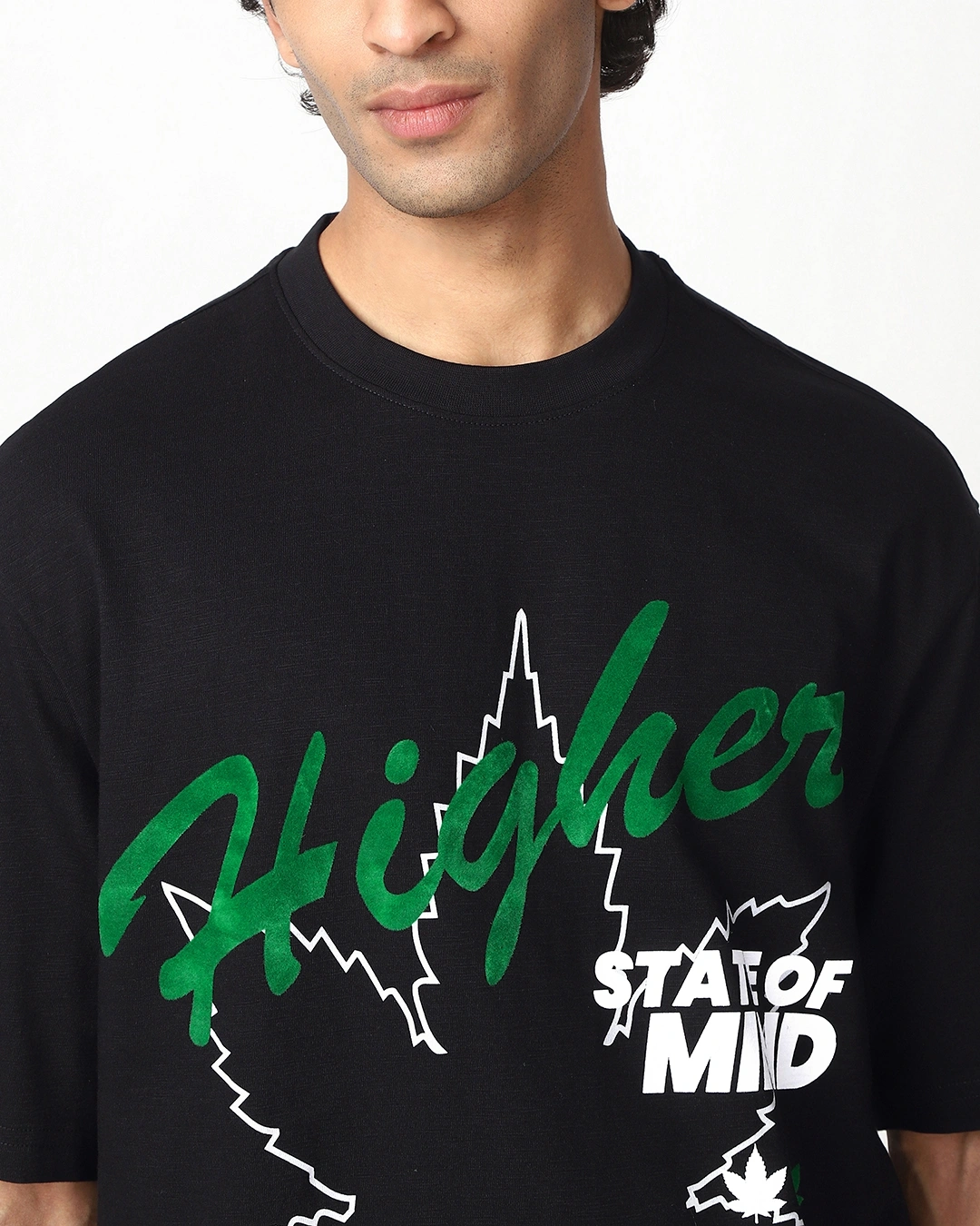 Men’s Jet Black Higher Graphic Printed Oversized T-shirt