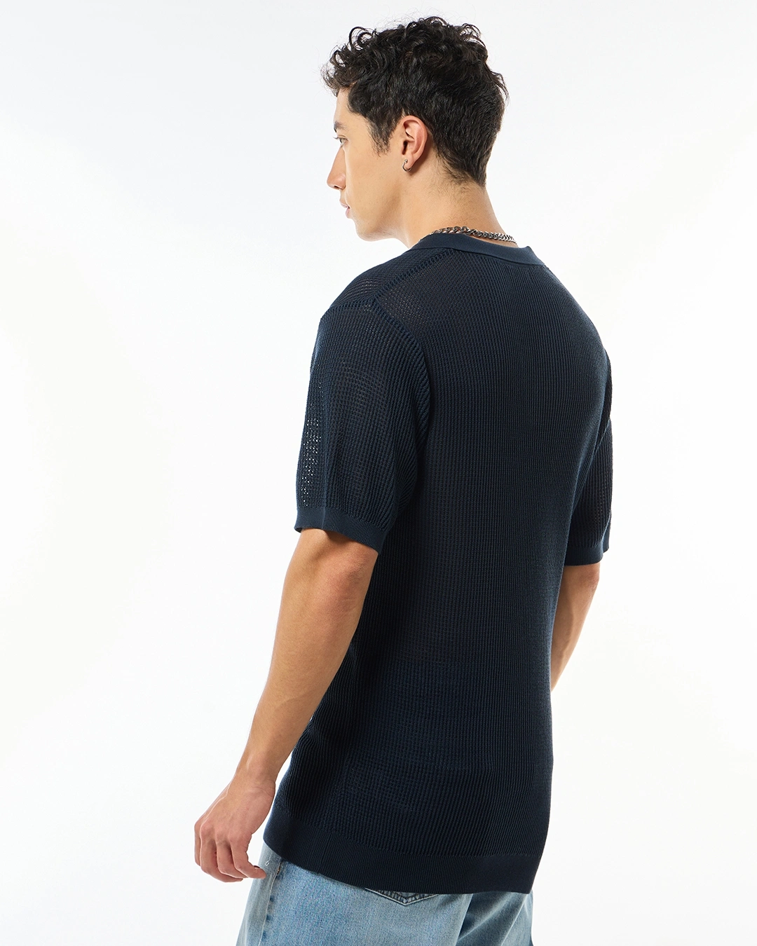 Men’s Navy Blue Flatknit Polo T-shirt