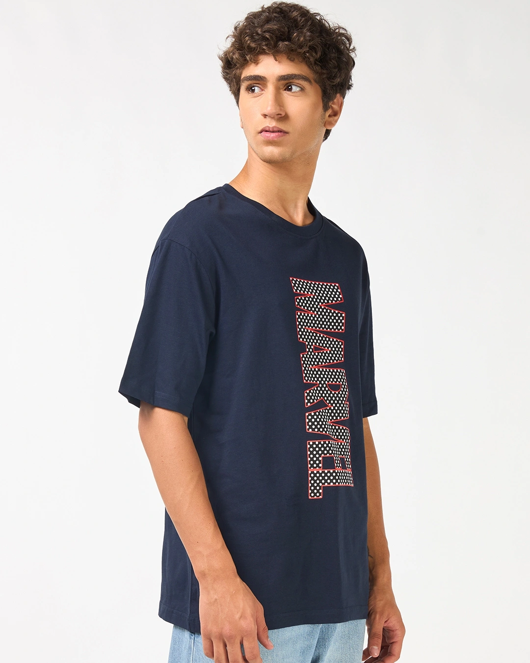 Men’s Navy Blue Marvel Typography Oversized T-shirt