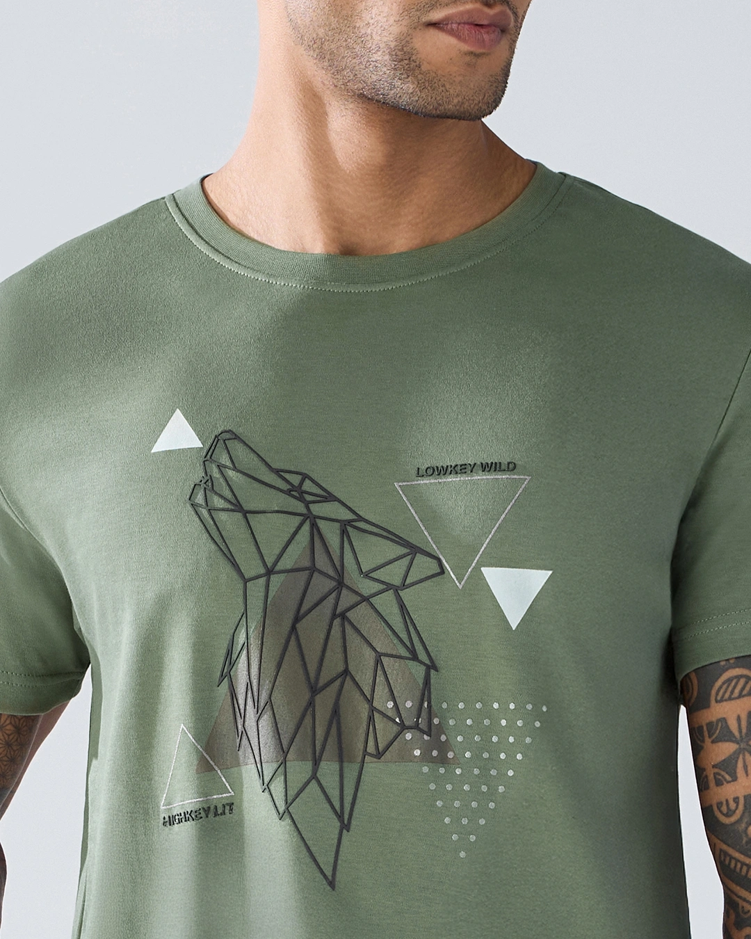 Men’s Olive Green Low Key Wild Graphic Printed T-shirt