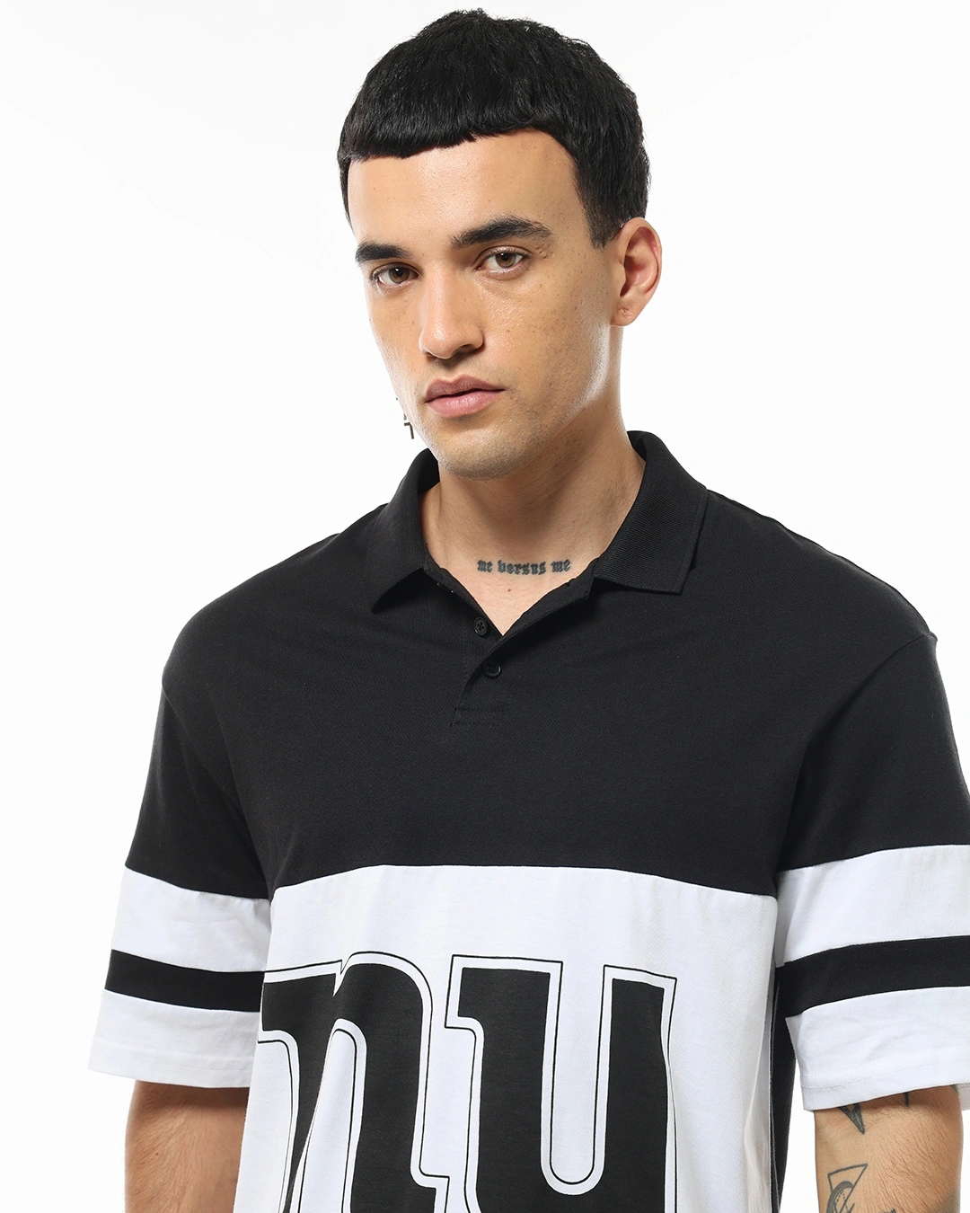 Men’s White & Black NY Color Block Oversized Polo T-shirt