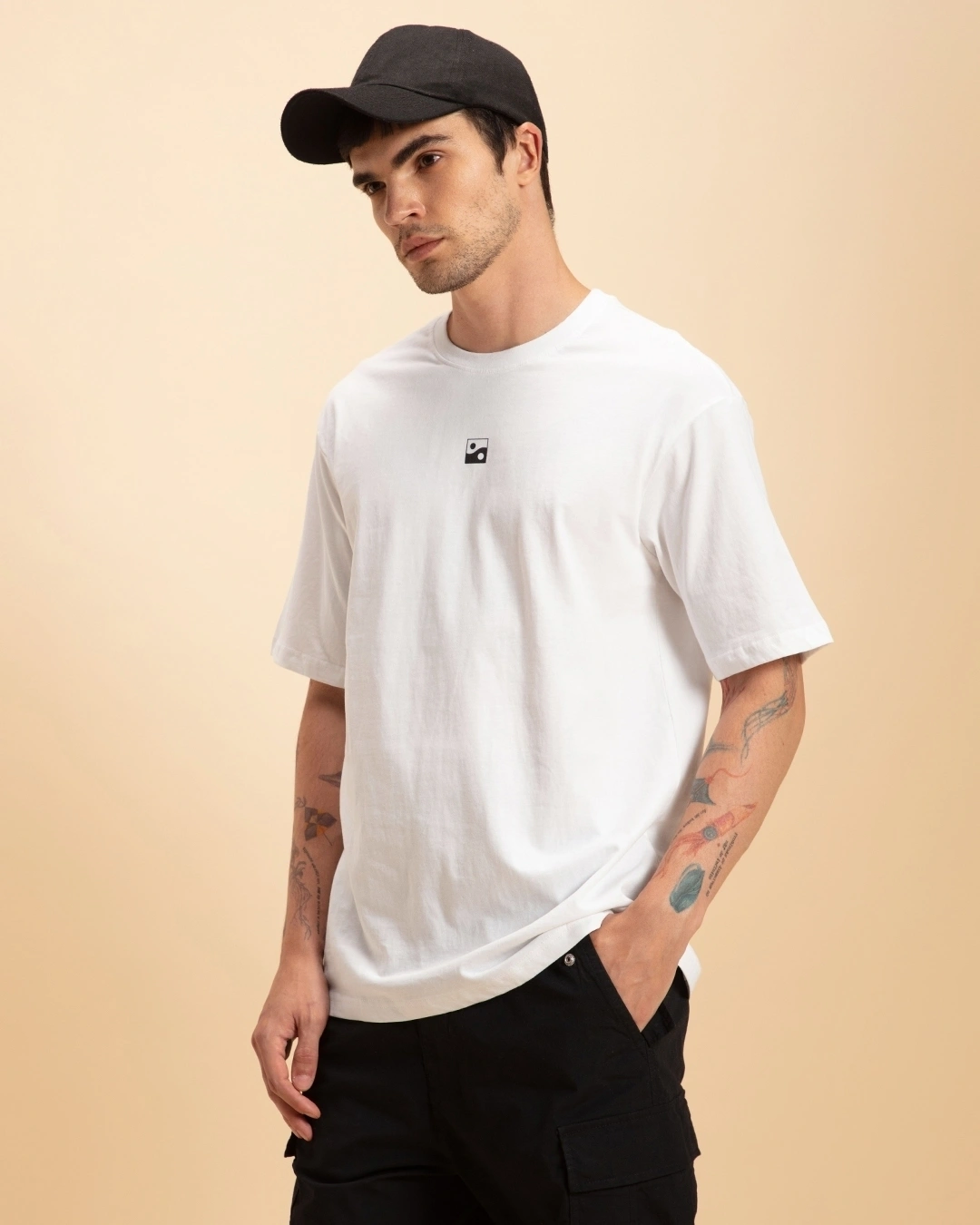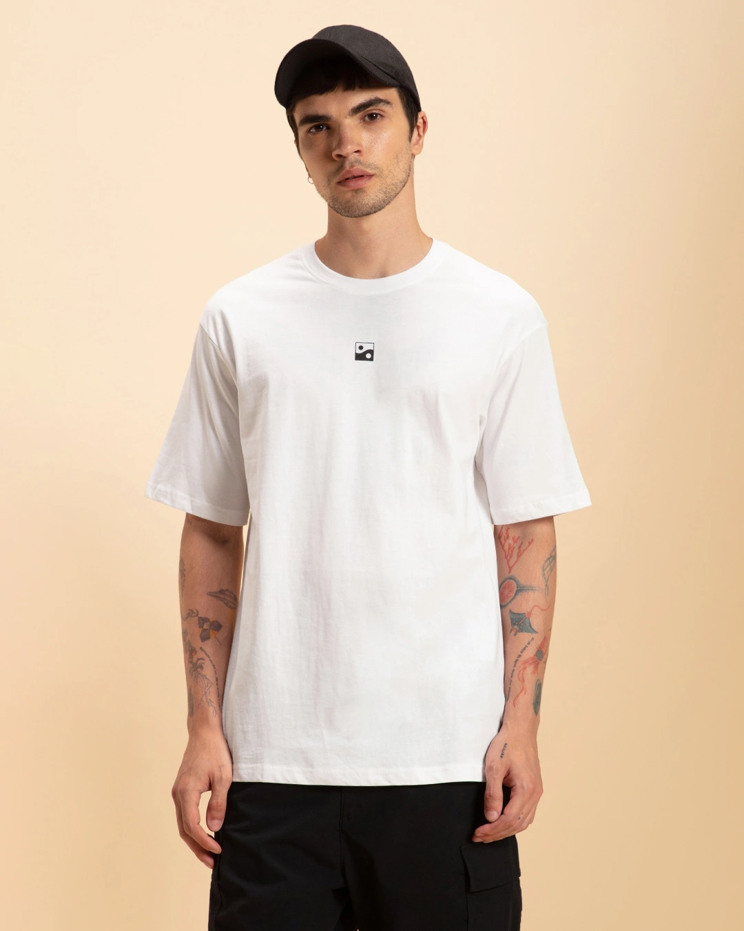 Men’s White Karma Circles Typography Oversized T-shirt