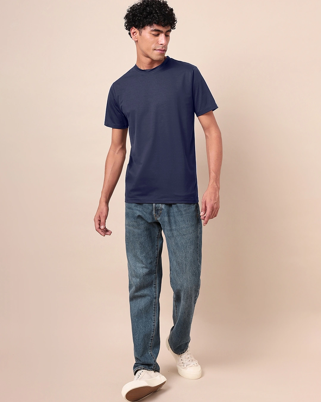 Plain Blue Solid Regular Fit Men’s T-shirt